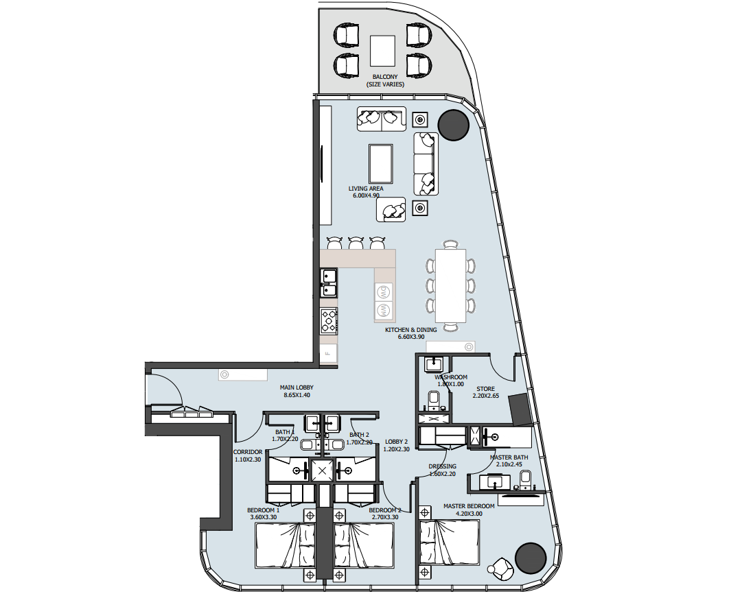 – 3 Three Bedroom Penthouses