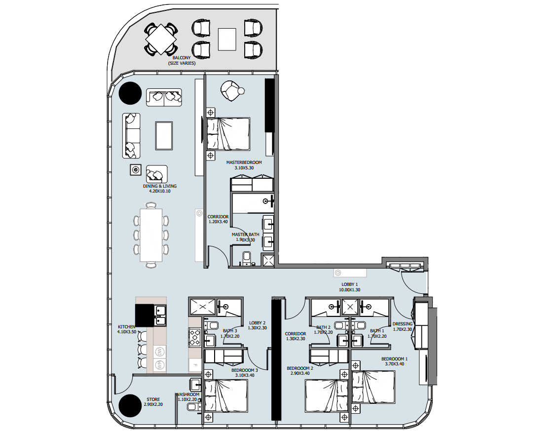 | Floor Plan | Category | Sizes | Parking | Gym |