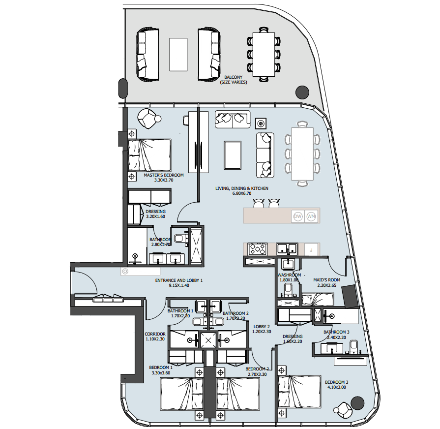One Reem Island offers a variety of apartment sizes and types, including: